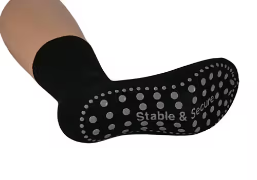 Stable & Secure är varumärket för dig som vill ha bekvämlighet, komfort och trygghet i ett. På sulan sitter ett gediget anti-halkgummi utspritt över hela foten för att garantera stabilitet. Sulan är något tjockare för komfort i stegen och kragen är ribbad och håller strumpan på plats.