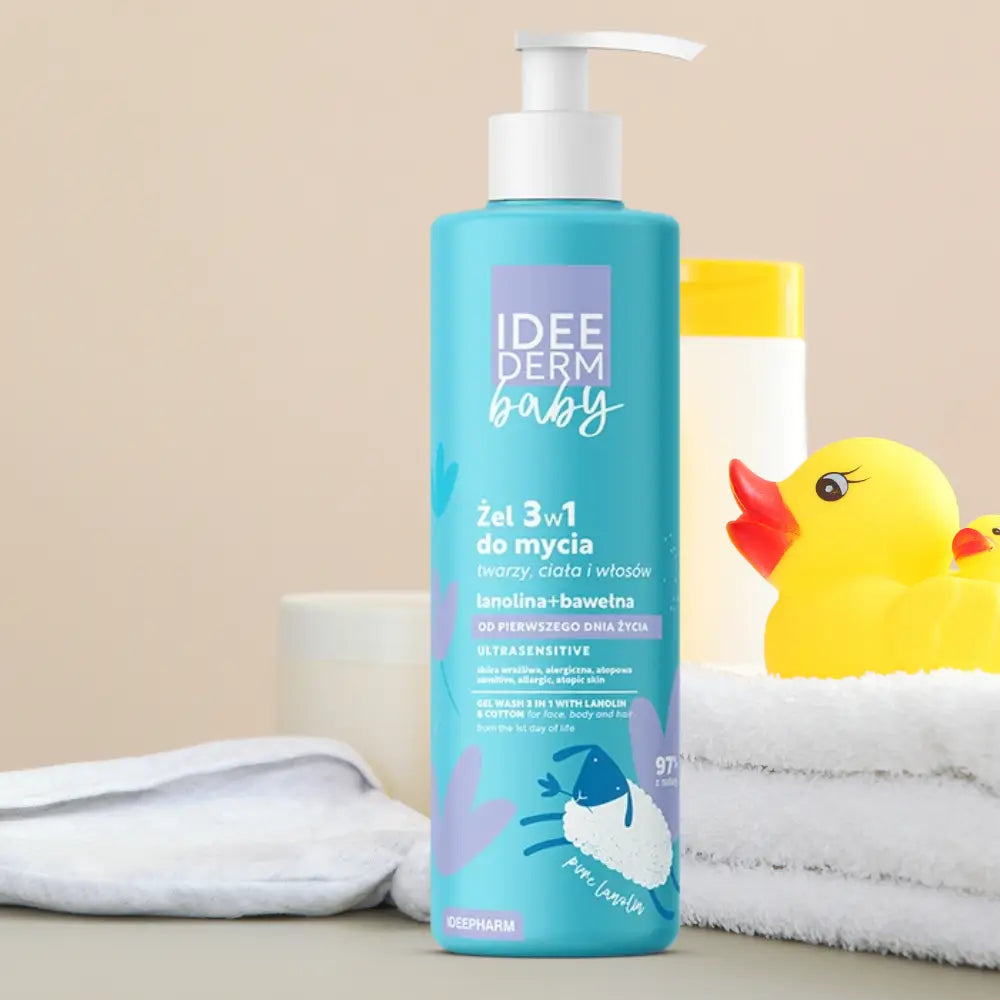IDEE DERM Baby 3-i-1 gel är utvecklad för daglig rengöring av ansikte, kropp och hår hos nyfödda och barn. Den milda formulan har hudvänligt pH och är anpassad även för känslig hud.