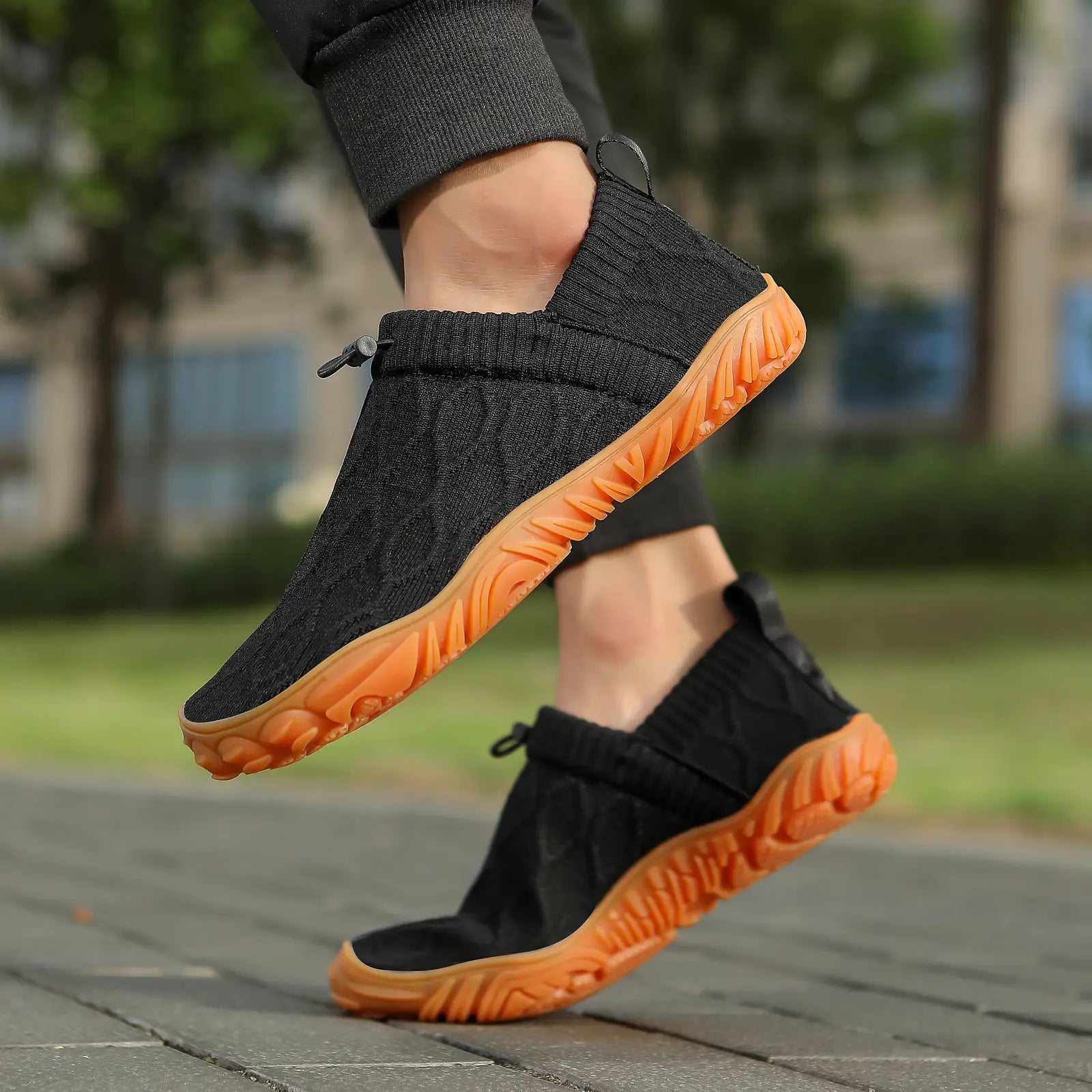 Barfotaskor Flex med bred tåbox - en sko som kombinerar halksäkerhet, komfort och flexibilitet. Med slitstark gummisula och ventilerande stickad ovandel är de perfekta för både vardag och promenader.