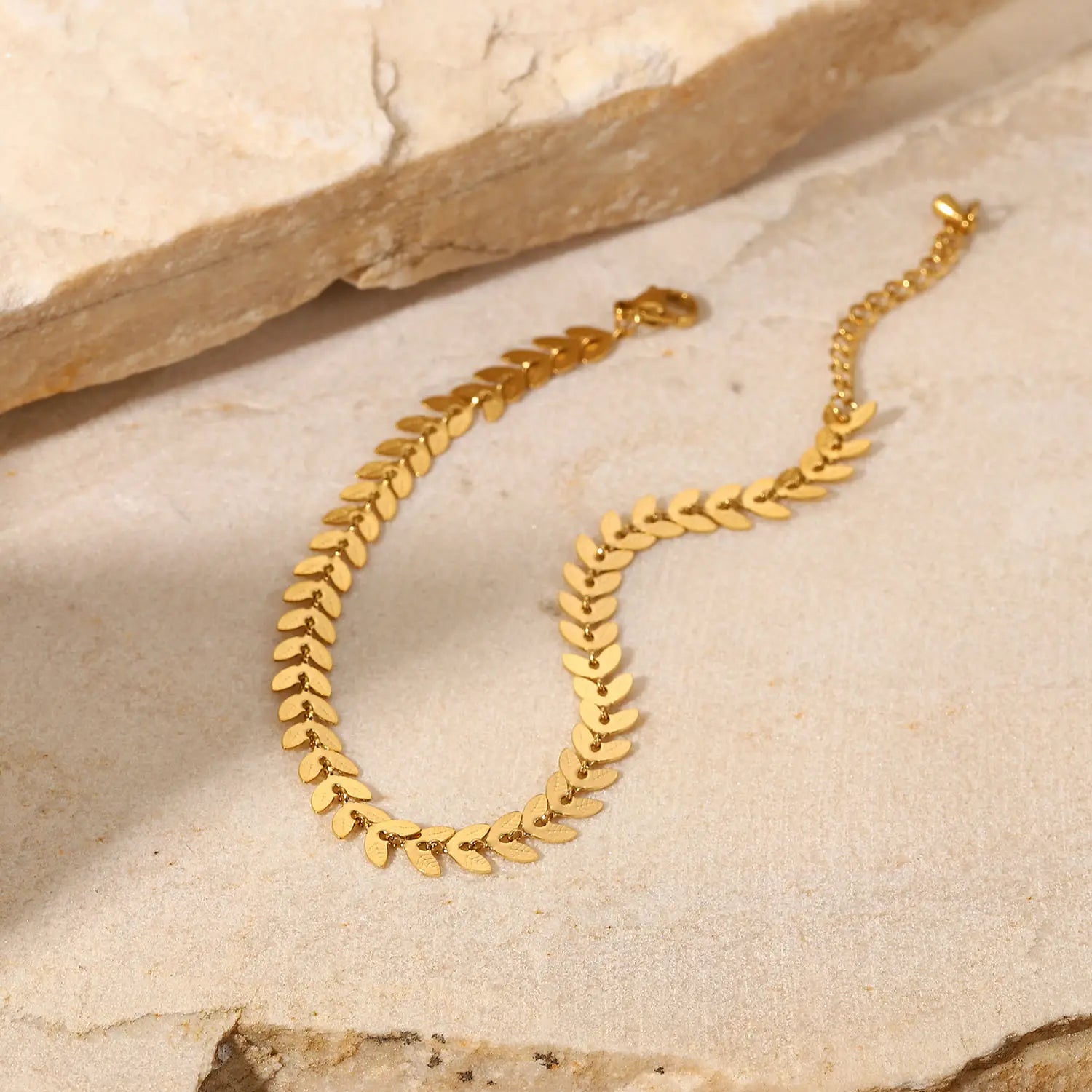 En stilren fotlänk med naturliga detaljer som ger din look en elegant och somrig känsla.