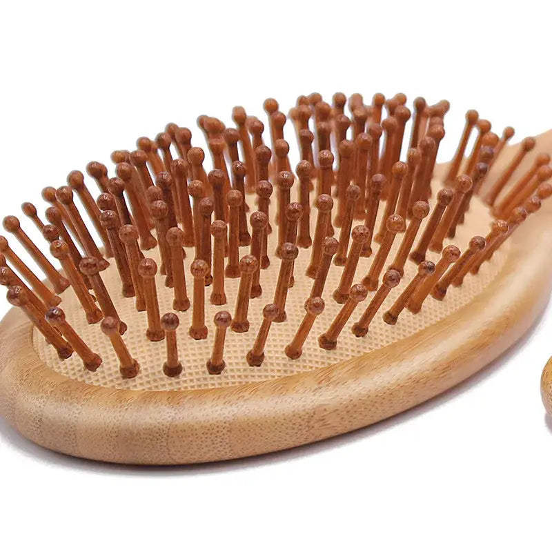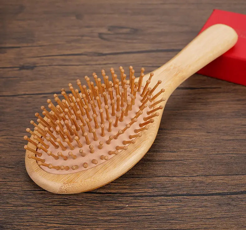 En skonsam och miljövänlig hårborste tillverkad av naturlig bambu och utrustad med en bekväm luftkudde som skapar en skön massageupplevelse för din hårbotten.