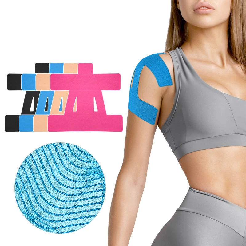 Denna pre-cut kinesiotejp är särskilt framtagen för att passa axeln och ge stabilt stöd vid både aktivitet och vila. Tejpen hjälper till att minska smärta, förbättra cirkulationen och stödja muskler och leder under hela dagen.