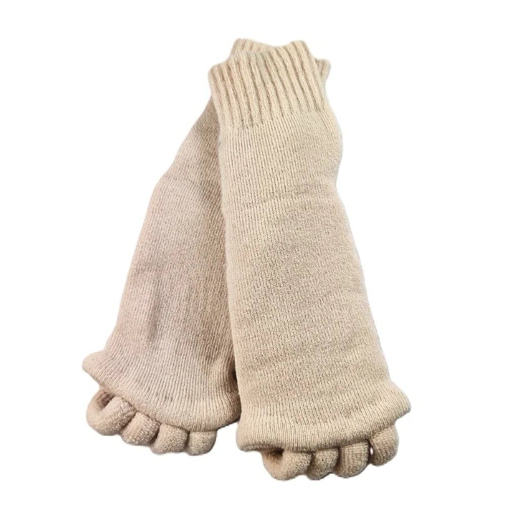 Mjuka tåstrumpor med öppen tå och frotté mellan tårna som håller dem skonsamt separerade.