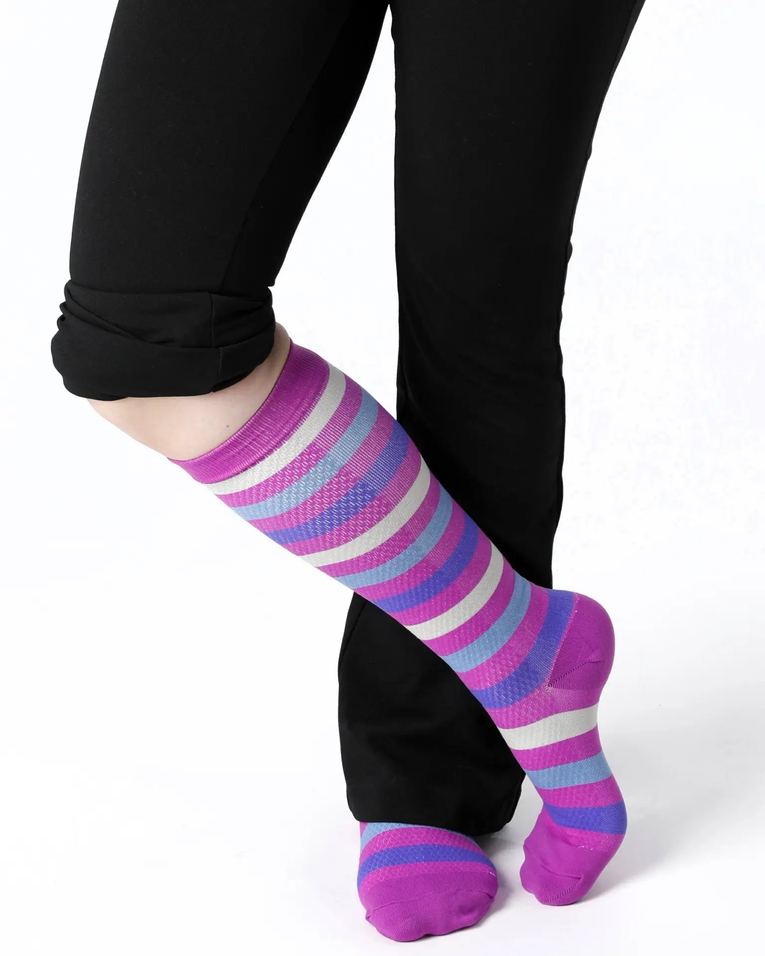 Letar du efter snygga och bekväma stödstrumpor som passar vid alla tillfällen? Då är dessa randiga stödstrumpor ett perfekt val.