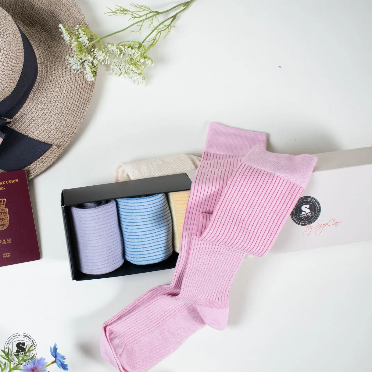 Finns även i bred modell: Stödstrumpor bred modell i härliga pastellfärger 5-pack