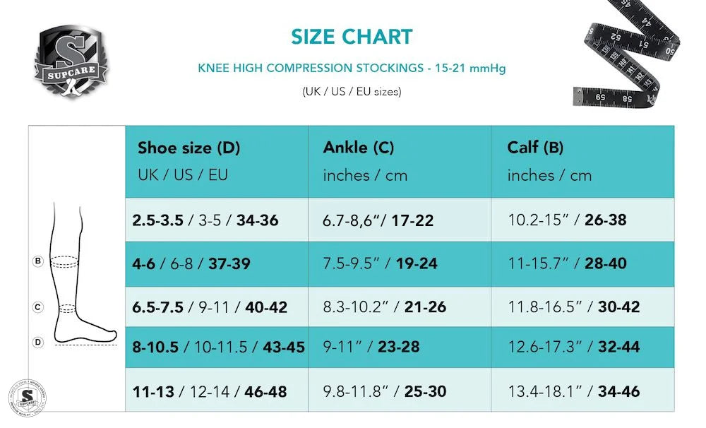 | Skostorlek (EU) | Ankelmått (cm) | Vadmått (cm) |