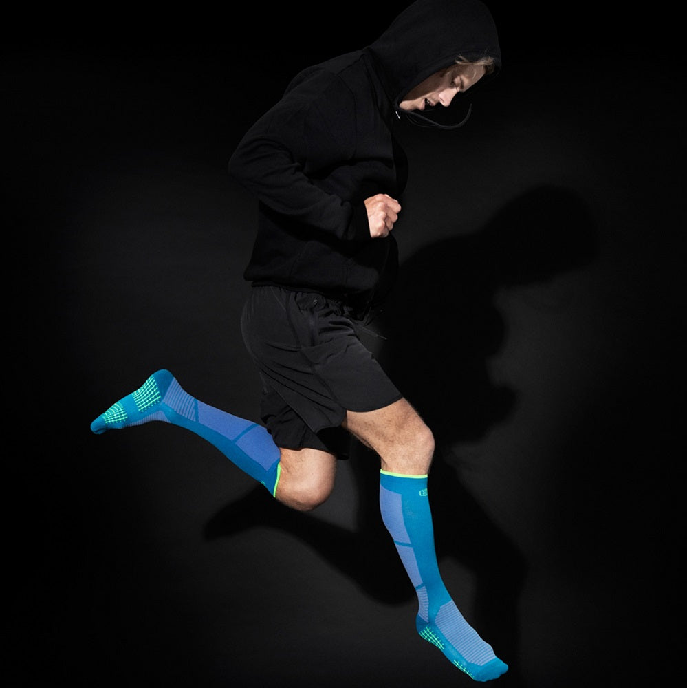 Bekväma sportstrumpor i blått, framtagna för dig som vill ha extra stöd och en stabil känsla vid träning.