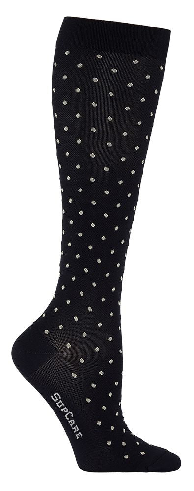 Prickiga medicinska kompressionsstrumpor från SupCare!<br /><br />Dags att visa upp dina medicinska kompressionsstrumpor! Dessa snygga kompressionsstrumpor i klass 2 är svarta med små vita prickar.<br /><br />Strumporna bär kvalitetsstämpeln för medicinska kompressionsstrumpor och har utprovats regelbundet av officiella kontrollmyndigheter. Kompressionsklass 2 ordineras av läkare till exempel efter en operation, vid venös insufficiens, svåra åderbråck eller ödem.
