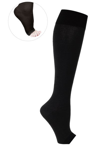 Knähöga kompressionsstrumpor utan tå från SupCare, framtagna för dig som vill ha ett stabilt stöd och samtidigt mer frihet för tårna.